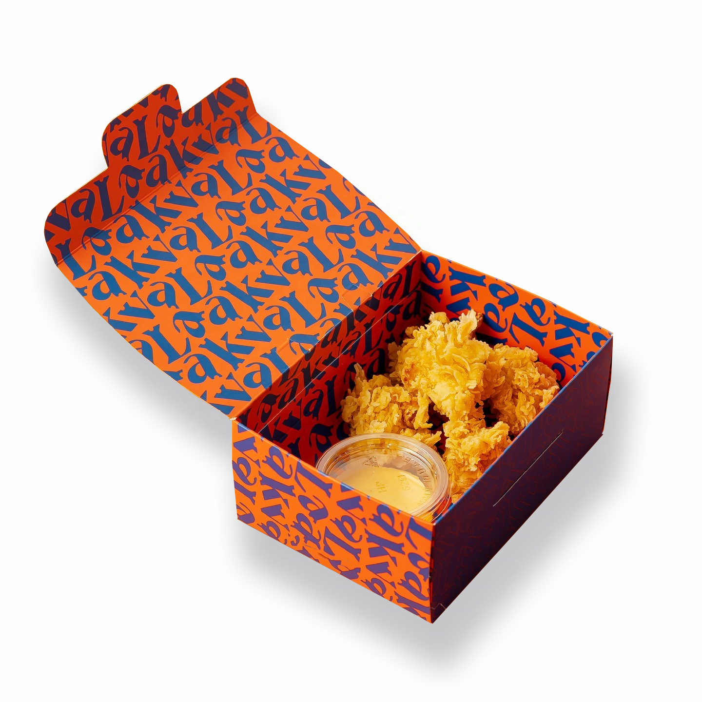 We offer fried chicken boxes made of food-grade materials that prevent grease stains, retain heat from hot food and absorb moisture. Perfect for fried chicken or a meal on the go. Specially designed for your custom box appearance and size. The box is biodegradable and compostable. Our fried chicken boxes can also be used to serve cold food. The fried chicken boxes we provide are rigid, heat-resistant and leak-proof. Our fried chicken boxes are designed for takeout and restaurants. They are ideal for transporting fried chicken from your restaurant to your customers.